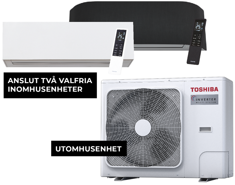 Toshibas Multisplit-system ger dig en flexibel och effektiv lösning för att skapa ett behagligt inomhusklimat året runt. Med möjlighet att ansluta två valfria inomhusenheter till en utomhusenhet, får du både hög prestanda och stilren design anpassad för dina unika behov.